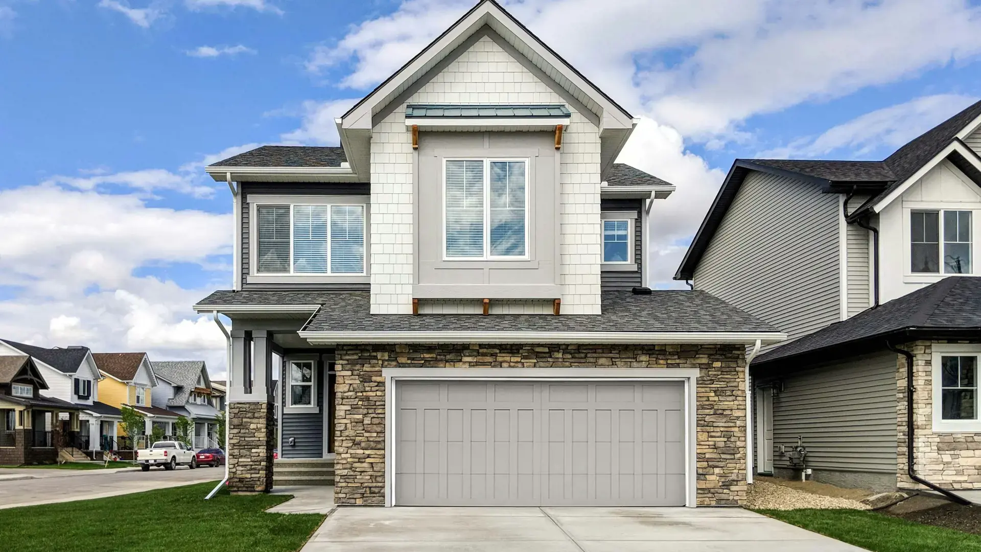 Varying architectural styles along a single street help to avoid a cookie-cutter look. Prairie, Farmhouse, Craftsman, Victorian, and Tudor architectures combine simple, yet timeless styles that will last for generations. The hard part will be picking your favourite among the charming lineup full of character and curb appeal.