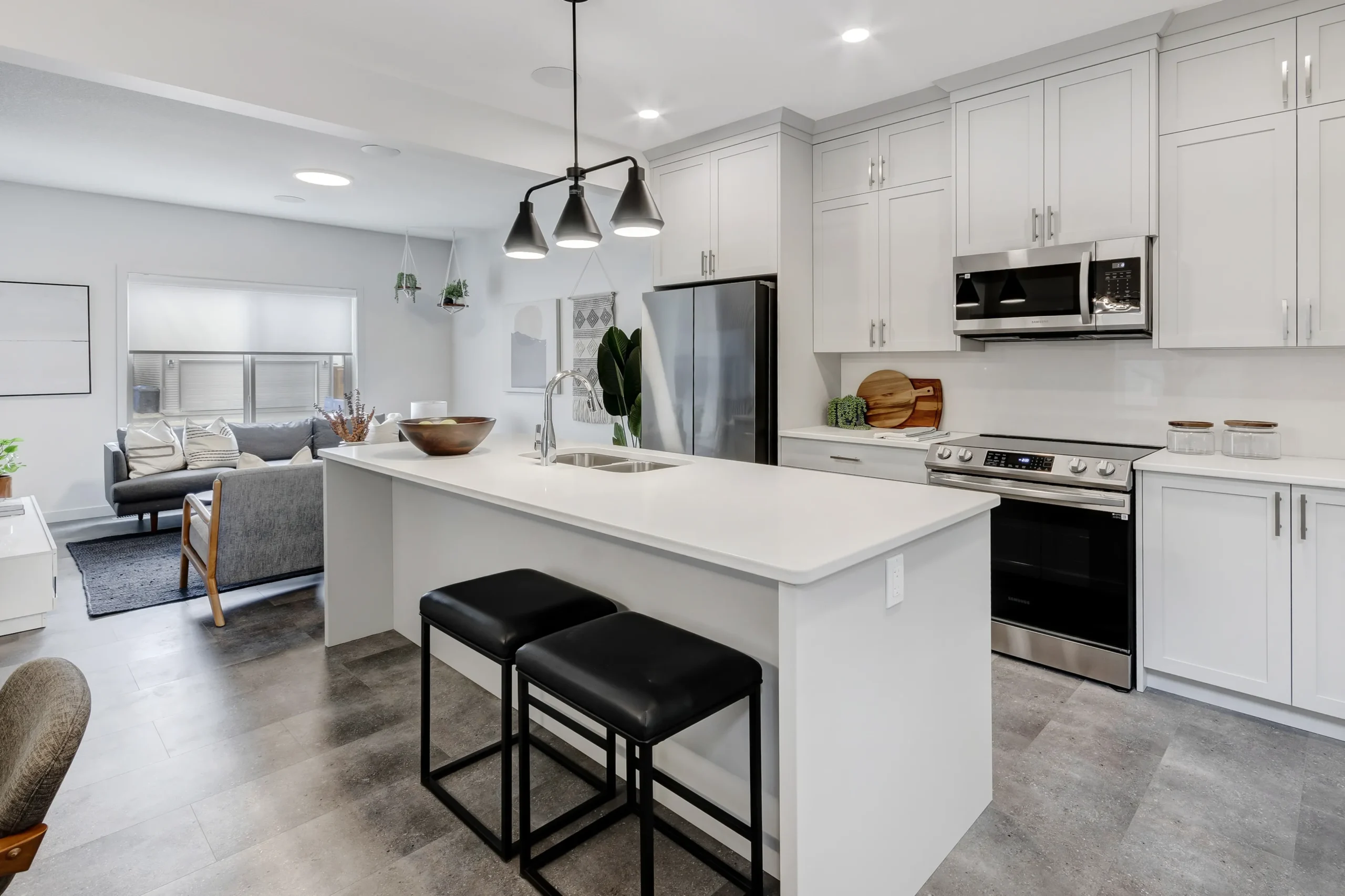 The Castlebar successfully checks all the boxes for most families by througfully incorporating not only three bedrooms, but an additional office space into the design. The layout offers the perfect blend of private spaces and open concept living for coming together at the end of a day inviting families to lay down their roots here.